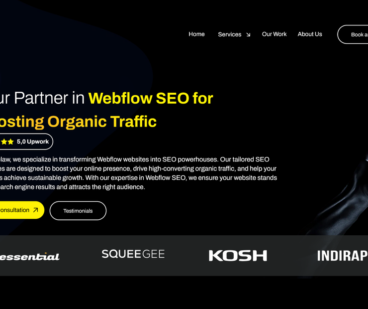 Boost your Webflow website''s performance with our expert SEO services. As a leading Webflow SEO agency, we specialize in optimizing your site for higher search engine rankings, faster load times, and better user experience. Our team provides tailored SEO strategies for Webflow sites, ensuring improved visibility and increased organic traffic. From technical SEO and on-page optimization to content strategy, we help your business grow online. Let us take your Webflow website to the next level with proven SEO techniques and measurable results.