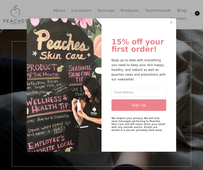 Peaches was founded on a simple idea, one facial that has the ability to treat all skin conditions. An unheard of idea in the industry, but one that has been proven time and time again. Over the course of 30 years in the industry we have seen every skin condition imaginable. From eczema, oily skin, %38 dry skin to cystic acne, melasma, rosacea, and many more, we've seen and treated them all. Consistency, a high quality facial, and wholesome products are the method to our success.