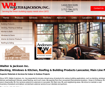 Since 1872, Walter %38 Jackson, Inc. has expanded to include a broad array of products for various building applications, such as decking, windows, kitchen and bathroom fixtures, wood flooring, and much more. We operate from four convenient Pennsylvania locations - three in Christiana, PA and one in Quarryville, PA. Our services extend to customers in Lancaster, PA, Main Line, PA, and neighboring areas. We strive to maintain a vast inventory of products and deliver unmatched customer service to our clientele and partners.