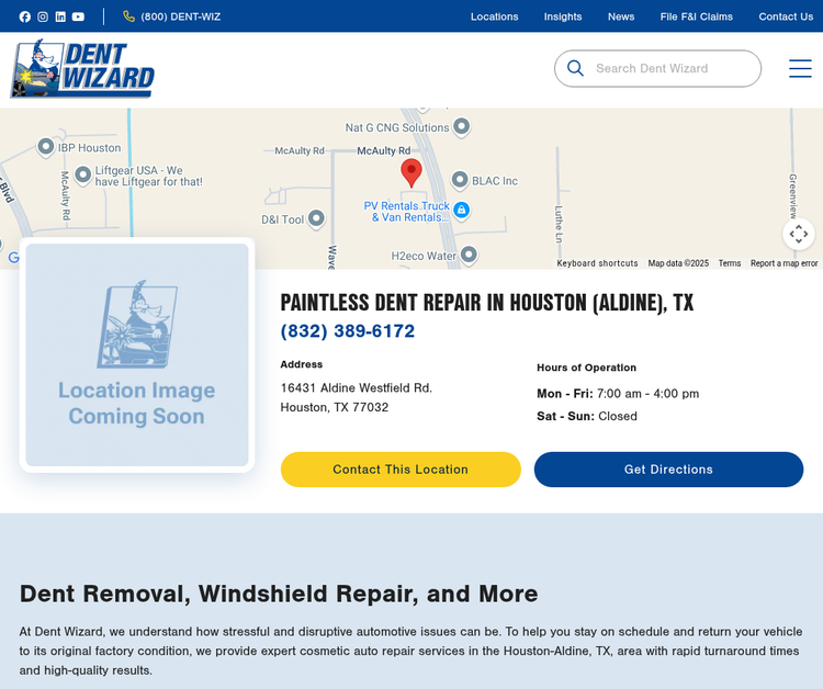 At Dent Wizard, we understand how stressful and disruptive automotive issues can be. To help you stay on schedule and return your vehicle to its original factory condition, we provide expert cosmetic auto repair services in the Houston-Aldine, TX, area with rapid turnaround times and high-quality results. Located in the Aldine area of Houston next to the George Bush Intercontinental Airport, our Aldine location is supplied with industry-leading equipment and highly trained technicians to provide expert Paintless Dent Repair, interior restoration, and more. Our proven PDR process can easily remove dents without affecting the original paint job, offering the fastest, most cost-effective solution for dent and ding removal. To receive a free estimate for your vehicle’s repair costs, visit our Aldine shop on Aldine Westfield Road or call us at (832) 389-6172 today.