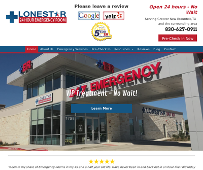 At Lonestar 24 HR ER, our goal is to provide they with world-class emergency care that’s convenient and patient friendly. You can count on the our physicians, physician assistants and nurse practitioners to deliver exceptional urgent care, seven days a week. Come to Lonestar 24 HR ER for the personalized medical care that you deserve. Call @ 830-627-0911.