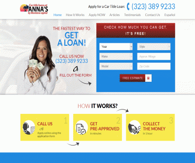 Anna’s Car Title Loans Car Title Loans in Los Angeles providing fast cash in L.A! Call (323) 389 9233 to apply for a car title loan in minutes, hassle free! Get the cash in 1 hour! www.titleloan-losangeles.com