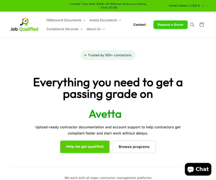Job Qualified supports contractors by simplifying account registration and safety program preparation for ISN, Avetta, Veriforce, and additional compliance systems.