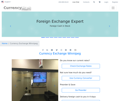 Currency Mart, aka Winnipeg Currency Exchange, is a currency exchange provider in Winnipeg, St. Vital Shopping Centre. We offer better exchange rates than banks and reserve foreign currency banknotes in stock. Our exchange rates are about 1% better than banks' rates both buy and sell. We keep 51+ currencies on hand, such as USD, EUR, GBP, JPY, MXN, CHF, AUD, PHP, KRW, CNY, trade 79 currencies in total, and accept both Canadian dollars and United States dollars as forms of payment.
