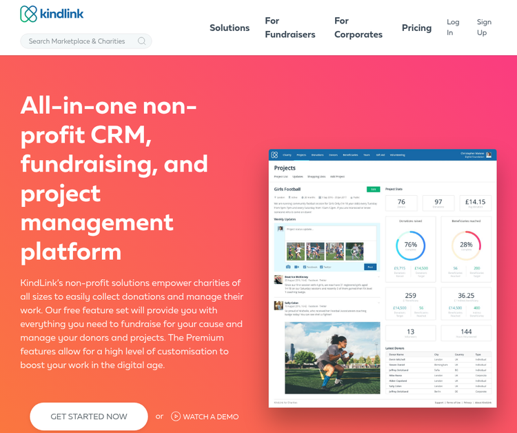 KindLink Foundation (part of the wider KindLink group) is an intuitive non profit CRM software solution designed to help charities manage donors, run fundraising campaigns, track projects, and report impact in one place. Choose between our free or premium subscription and get started!