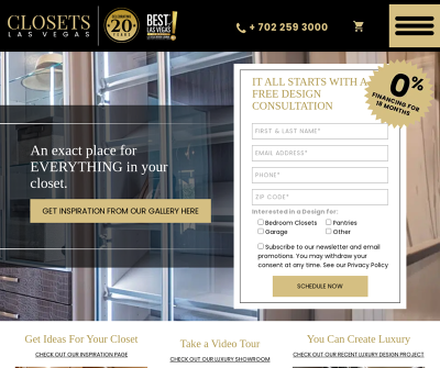 Voted ''Best Custom Closet Company 2023'' in Southern Nevada by the Las Vegas community and top builders. We''re a trusted family-owned business with a 20-year legacy. We''ve earned our reputation as manufacturing experts right here in Las Vegas. Offering five product lines, our personal design consultants create affordable solutions for custom closets, pantries, offices, wall beds, garage cabinets and organizers.With 100,000 plus installed closets, our skilled team ensures lasting craftsmanship, backed by an unbeatable warranty covers both parts and labor, ensuring your peace of mind. Trusted by over a dozen local homebuilders, we stand out as no other closet company serves even two.