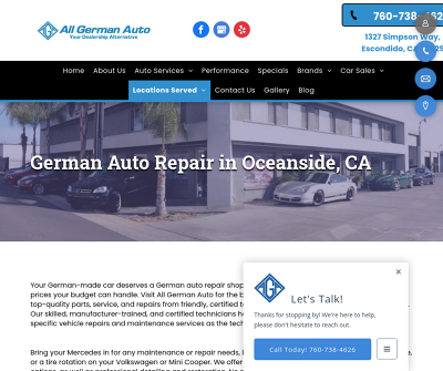 Your German-made car deserves a German auto repair shop near home in Oceanside, CA, with competitive prices your budget can handle. Visit All German Auto for the best of both worlds. Your automobile will receive top-quality parts, service, and repairs from friendly, certified technicians without the dealership price markup.