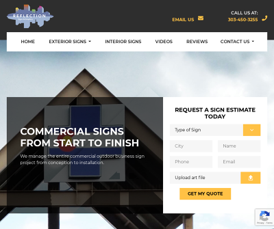 Reflection Signs is a full-service commercial sign company serving Colorado and the Front Range. We have on-site graphic sign designers and experienced project managers who will manage the exterior sign process from site survey to permit procurement to sign installation. We manage the entire commercial outdoor business sign project from conception to installation.