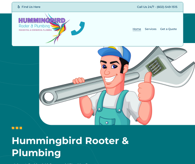 Hummingbird Rooter & Plumbing is your trusted source for addressing a wide range of plumbing needs, both for residential in commercial properties in Phoenix, AZ. We offer services in all your plumbing repair and installation requirements. Our proficiency extends to various areas, including drain cleaning, septic services, and precise camera-based identification of sewer line issues. Whether it''s a remodeling project or a large-scale commercial construction endeavor, our plumbing services are here to assist. We leverage cutting-edge hydrojetting methods for sewer line maintenance and guarantee top-tier water heater installations and repairs. Call us at (602)-549-1515 for details!