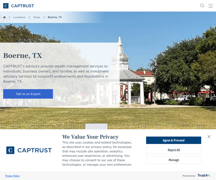 CAPTRUST's advisors provide wealth management services to individuals, business owners, and families as well as investment advisory services to nonprofit endowments and foundations in Boerne, TX.