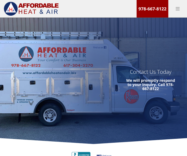 Affordable Heat & Air is a veteran-owned company specializing in heating and air conditioning systems for homes and businesses in Billerica, Massachusetts. We offer services including AC repair, heating installation, and system maintenance. Count on our experienced technicians for fast, affordable, and energy-efficient solutions to keep your home comfortable all year long.