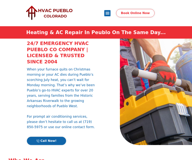 Trusted experts HVAC in Pueblo CO for 20+ years. Emergency heating and cooling pueblo repairs available 24/7. Serving all Pueblo neighborhoods!
