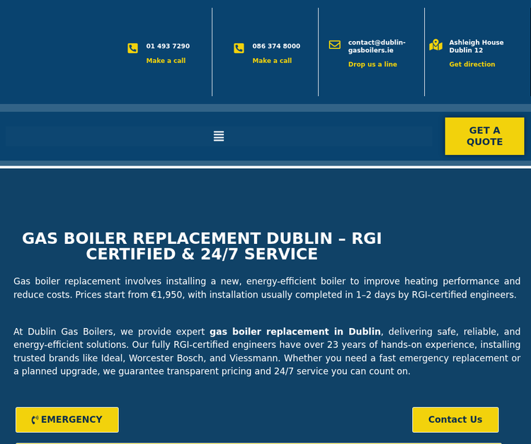 Dublin Gas Boilers provides expert gas boiler installation, servicing, and replacement across Dublin. Our RGI-certified engineers deliver safe, efficient, and fully compliant heating solutions for homes and businesses. With more than 23 years of hands-on experience, we ensure every boiler operates at peak performance while reducing energy costs and emissions. From new installations to emergency repairs, we handle all gas heating needs with professionalism and care.