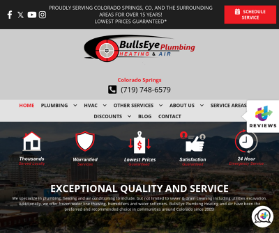 BullsEye Plumbing Heating & Air has been serving Colorado Springs since 2005 with over 40 years of combined expert experience! Our comprehensive services offer you a one-stop-shop for your heating, cooling, plumbing, end excavation needs. From installations to repairs, we will have you covered from beginning to end. View the coupons and specials on our website, and save with some of the best deals on services in the area! BullsEye Plumbing Heating & Air is dedicated to providing you with excellent services at a fair rate every time. For HVAC and plumbing repair, installation and other service requests in Colorado Springs, call BullsEye Plumbing Heating Air today or contact us online.