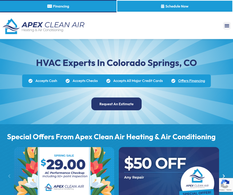 Apex for all your HVAC and duct cleaning needs. We offer many types of HVAC services to restore your living back to being fresh and clean once again. Our mission is to lower energy costs and provide the healthiest quality air possible. For anyone, business or residential, we will increase the efficiency of your system by using the very latest techniques, the latest technologies and top-of-the-line products.