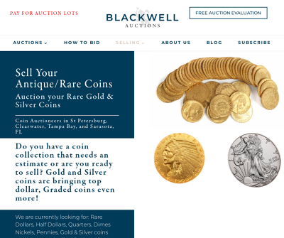 Blackwell Auctions, located at 5251 110th Ave N, Suite 118 in Clearwater, FL, specializes in a coin auction house. Esteemed for expertise in selling gold, silver, and rare coins. Contact them at 727-220-2154 to discover the optimal value from your collection.