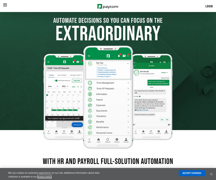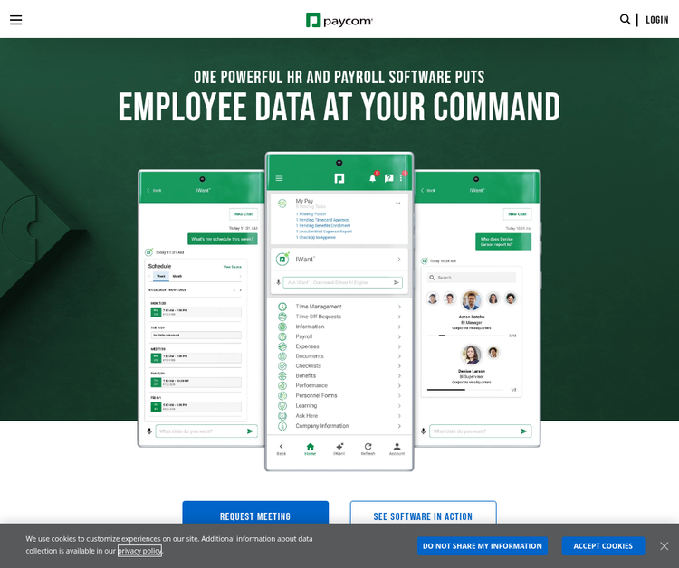 Paycom''s comprehensive payroll and HR technology allows businesses of all sizes to manage their entire employment life cycle, from recruitment to retirement. With our industry-leading single software, our clients access all of their tools in one place, creating a seamless and accurate user experience. Our self-service mobile app allows employees to enter, update and manage their own information, reducing data errors systemwide.