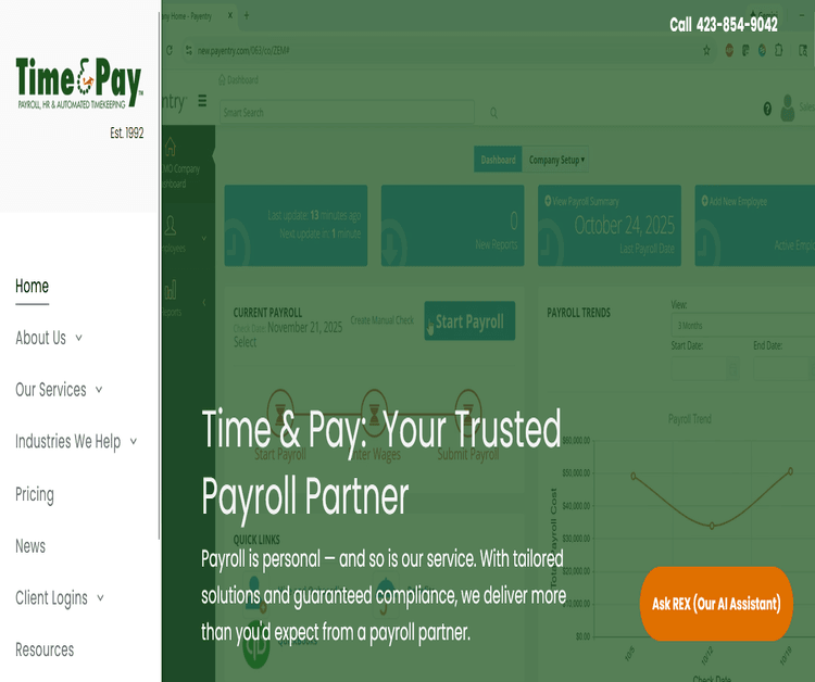 Headquartered in Johnson City, TN, Time %38 Pay has over 30 years of experience delivering tailored payroll, HR, and timekeeping solutions nationwide. We ensure accuracy, compliance, and efficiency with automated time management and seamless digital onboarding tools. Streamline your operations and focus on growth with our personalized service and innovative solutions. Partner with Time %38 Pay for a smoother payroll experience.