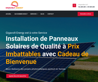Chez Gigavolt Energy, nous sommes ddis transformer la manire dont le monde utilise l''nergie. Notre mission est de fournir des solutions d''nergie renouvelable fiables et efficaces travers l''installation de panneaux photovoltaques de pointe. Nous offrons une gamme complte de services, incluant la consultation, la conception personnalise, l''installation professionnelle et la maintenance continue, afin d''assurer que nos clients maximisent leur production d''nergie solaire. Avec Gigavolt Energy, vous pouvez rduire votre empreinte carbone, conomiser sur vos factures d''nergie et contribuer un avenir plus durable pour tous.