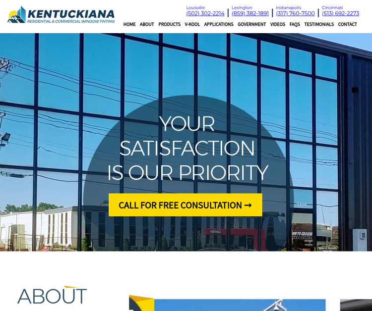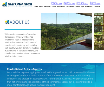 Kentuckiana Residential and Commercial Window Tinting Service delivers exceptional window tinting solutions for homes and businesses. A variety of window film applications can be used to reduce glare, increase privacy, filter UV light, reduce carpet and furniture fading without closing the curtains, and even prevent breakage and intrusion. With more than three decades of experience, Kentuckiana Window Tintings is a reliable resource for your home and business window tinting requirements.