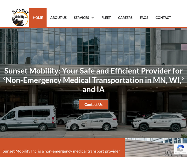 Sunset Mobility Inc. is a trusted non-emergency medical transport provider (NEMT) based in Rochester, MN. We mainly serve Winona County, Wabasha County, Olmsted County, Goodhue County, Dodge County, and surrounding areas. Our team offers safe, reliable transportation for medical appointments, therapy, specialty care, and other essential healthcare services. We are committed to delivering compassionate service, prioritizing your safety, comfort, and punctuality. Whether you need transport to hospitals, clinics, or therapy centers, Sunset Mobility Inc. ensures you arrive on time with dignity and care. Choose us for dependable NEMT services that help you access the care you need across southeastern Minnesota.