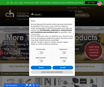 Craftmaster Hardware is a full-service qualified wholesale distributor of security hardware, detention, commercial door locks, and locksmith supplies. You can count on high-quality products and competitive pricing when you work with us. But we know you need something more to become your most valued partner, your "go-to source.Our Customers Rely on us Every Day Because:- We are experts in the education, healthcare, facility security and detention markets,- We take personal responsibility for
