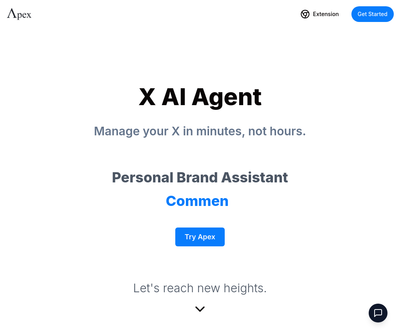 Apex offers an AI-powered platform developed to automate and boost user interaction on social media. By using advanced language models, the platform crafts personalized replies that align with the user''s distinct voice, making it possible for effective interaction with target accounts. This automation allows users to concentrate on strategic growth, fostering algorithmic and social connections, enhancing material visibility, and expanding reach. Apex simplifies the engagement process, efficiently managing interactions that would usually need extensive time and effort.