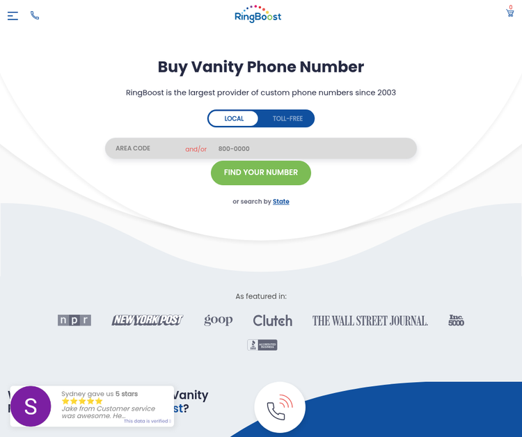 RingBoost is the nation's largest marketplace of custom phone numbers, including local, toll-free, vanity, easy-dial, tracking numbers, and exhausted area codes. We've been in business for over 15 years and are pioneers in helping businesses connect better with prospects and customers to fuel growth.