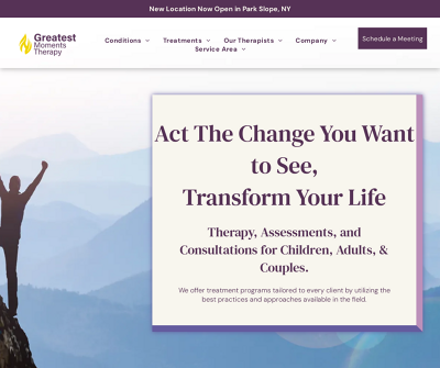 At Greatest Moments, we provide therapy and assessments for children to adults with ADHD, OCD, ASD, and their families. Our programs aim to enhance life adjustment, offering neuropsychological and behavioral assessments, and interventions in schools or our offices. We apply evidence-based treatments like CBT, DBT, EMDR, and sensorimotor therapy alongside behavioral coaching to support our clients' diverse needs.
