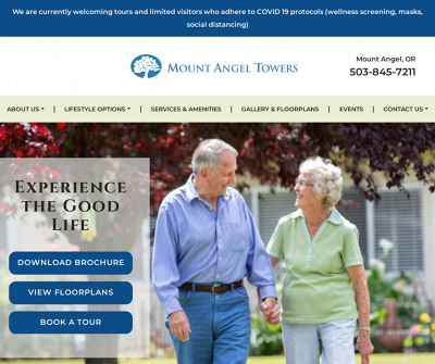 Mount Angel Towers is a community for seniors located in the beautiful Willamette Valley, mid-way between Salem and Portland, Oregon. We offer large apartments, a wide variety of floor plans, great food, and a caring staff. Our community is situated in the country, surrounded by fields and orchards, but is just 15 minutes from small cities with every convenience.